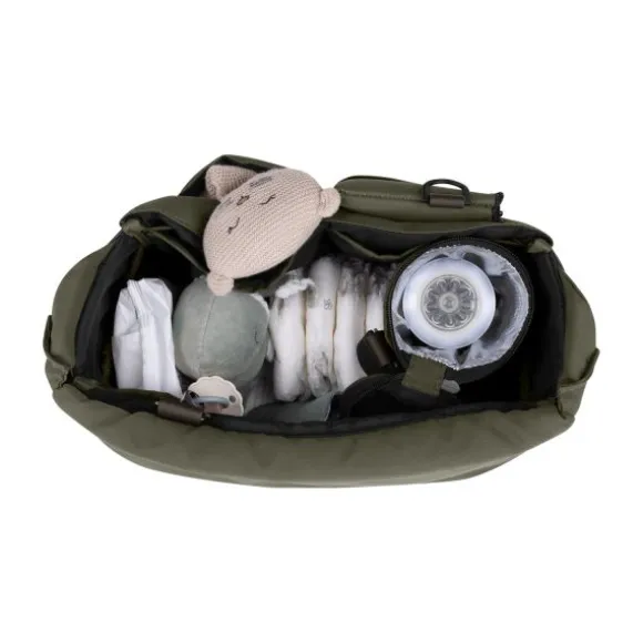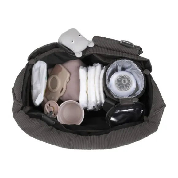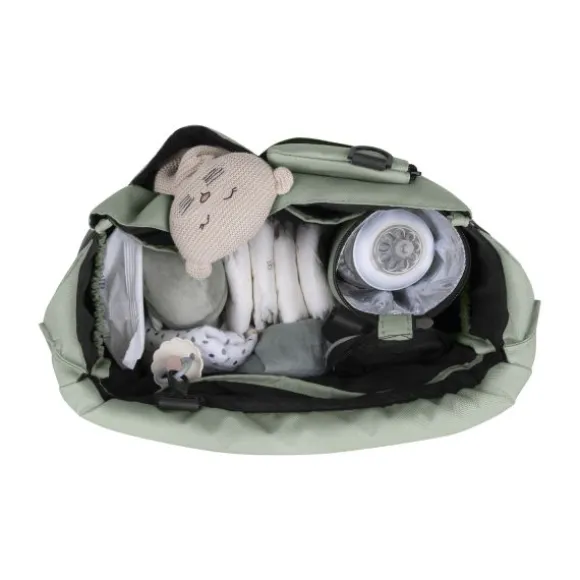 De tas heeft talrijke opbergvakken aan de binnen- en buitenkant, zodat je luiers, flessen en andere essentiële items overzichtelijk kunt meenemen. De praktische magnetische sluiting op de voorflap zorgt ervoor dat je snel toegang hebt tot de belangrijkste spullen. Het ruime hoofdvak biedt voldoende ruimte voor luiers en doekjes, terwijl de kleinere vakken ideaal zijn voor speentjes, crèmes en andere kleine benodigdheden.