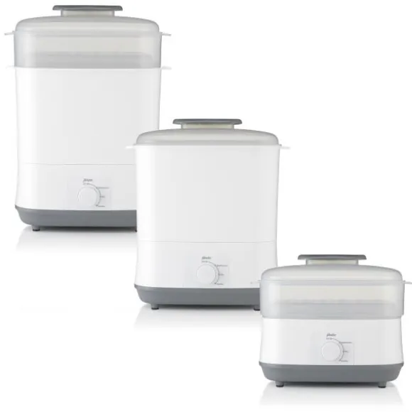 Dankzij het slimme 3-in-1 modulaire ontwerp is deze stoomsterilisator aanpasbaar in formaat en geschikt voor standaard én brede flessen tot 330 ml. De automatische uitschakeling na afloop van het programma zorgt voor extra gebruiksgemak en veiligheid. Met drie programma’s – steriliseren, drogen, of een combinatie van beide – kies je eenvoudig wat op dat moment nodig is.