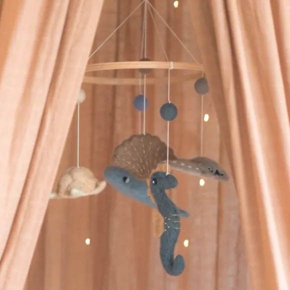 De Baby Bello Under the Sea Mobiel is een stijlvolle toevoeging op de baby of kinderkamer. De mobiel is gemaakt van hoogwaardig materiaal. De schattige figuurtjes uit het Under the Sea thema zullen je kindje uren kunnen vermaken. De mobiel en de figuurtjes hebben verschillende kleuren en contrasten wat bijdraagt aan de ontwikkeling van je kindje. De mobiel is eenvoudig te bevestigen aan de wieg, box of ledikant met behulp van een lusje.