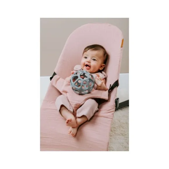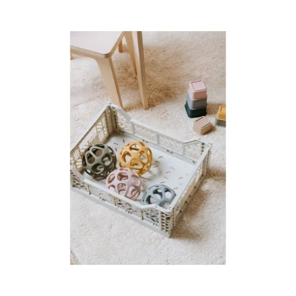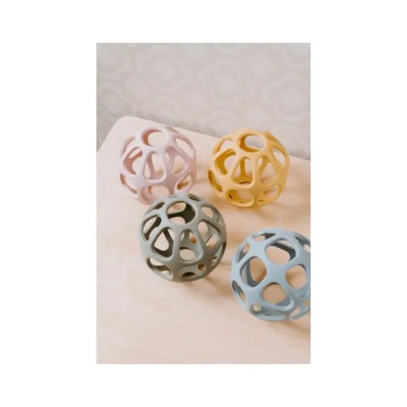 Met deze Baby’s Only Speelbal – Warm Linnen kan je kindje heerlijk spelen. Doordat de bal grote gaten heeft, is hij makkelijk vast te houden met kleine kinderhandjes. De bal is gemaakt van siliconen, waardoor de bal ook als bijtspeeltje gebruikt kan worden. Dit zal ervoor zorgen dat de pijn bij doorkomende tandjes af zal nemen bij je kindje. Door met de stijlvolle bal te spelen, wordt de ontwikkeling van de motoriek van je kindje gestimuleerd. De speelbal is verkrijgbaar in verschillende kleuren en is geschikt vanaf 6 maanden.