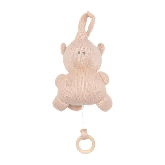 Ontdek de Bamboom Music Toy – Rhino Pink in de vorm van een neushoorn. Door aan het touwtje te trekken begint dit zachte vriendje ontspannende melodieën af te spelen, waardoor je kindje een glimlach, nieuwsgierigheid en plezier krijgen. Gemaakt van zachte en veilige materialen, stimuleert het aanraking en nieuwsgierigheid en wordt het de ideale speelkameraad. Perfect om uw baby te allen tijde te vermaken en te kalmeren..