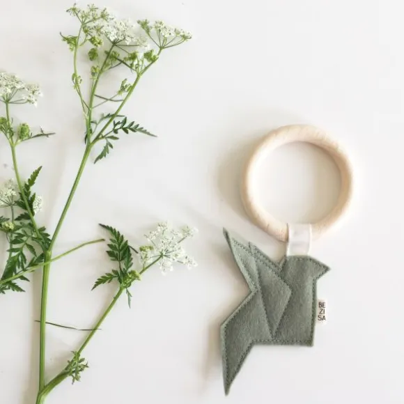 De BEZISA Birds Bijtring Pistache Green bestaat uit een houten ring met een stoffen vogel waarop je kindje kan bijten. Hierdoor zal de pijn bij doorkomende tandjes verzacht worden. Het vogeltje is van binnen voorzien van knisperpapier, waar je kindje mee kan spelen. Door te spelen met en te bijten op het speeltje wordt de ontwikkeling van de fijne motoriek gestimuleerd. De producten van BEZISA zijn bewust gemaakt in neutrale kleuren, zodat je kindje niet overprikkeld wordt.