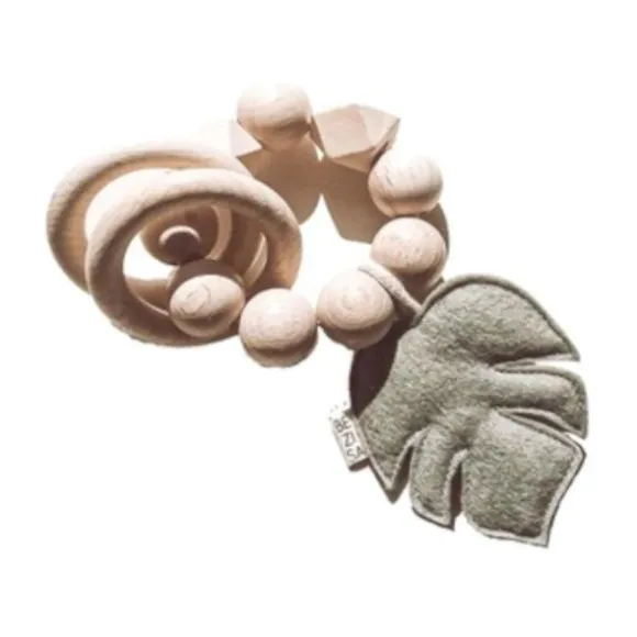 De BEZISA Leaves Rammelaar Pistache Green is een vrolijk speeltje waar je kindje lekker mee kan knuffelen en spelen. De rammelaar is makkelijk vast te houden voor je kindje. Daarnaast is de rammelaar ook voorzien van een houten ring die perfect als bijtring kan dienen als de tandjes van je kindje doorkomen. Verder zijn de producten van BEZISA bewust gemaakt in rustige kleuren, zodat je kindje niet overprikkeld wordt.
