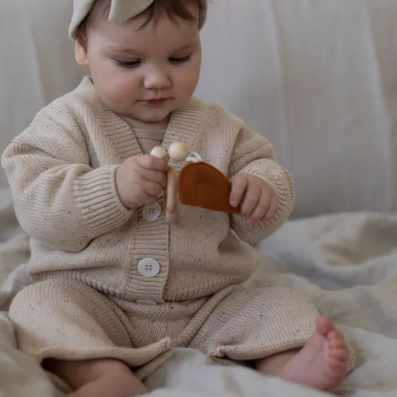 De BEZISA Sunset Rammelaar is een vrolijk speeltje waar je kindje lekker mee kan knuffelen en spelen. De rammelaar is makkelijk vast te houden voor je kindje. Daarnaast is de rammelaar ook voorzien van een houten ring die perfect als bijtring kan dienen als de tandjes van je kindje doorkomen. Verder zijn de producten van BEZISA bewust gemaakt in rustige kleuren, zodat je kindje niet overprikkeld wordt.