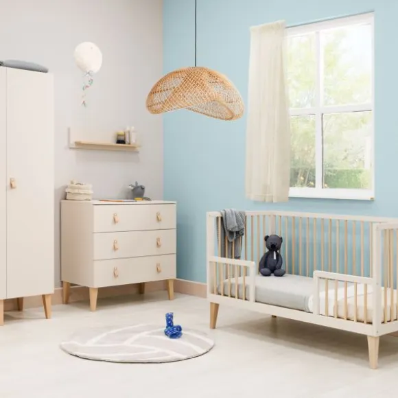 De Bopita Amira Babykamer | Bed 60×120 cm + Commode is een stijlvolle basisset met een warme, natuurlijke uitstraling. De combinatie van de zandkleur Dune en natuurlijke houten details zorgt voor een rustige sfeer in de babykamer. Het ledikant met verstelbare bodem en de commode met drie ruime lades vormen samen een praktische en duurzame inrichting voor de eerste jaren van je kindje.