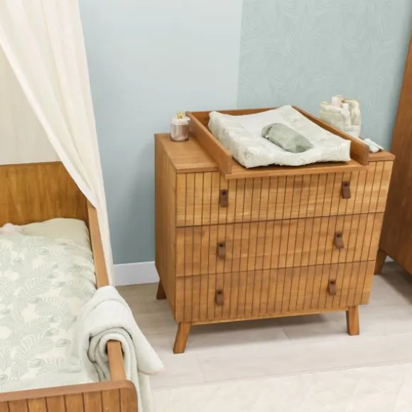 De Bopita Bo Bladvergroter – Rose / Wood is onder andere geschikt voor commodes van de serie Senna. De bladvergroter op een commode zorgt ervoor dat jouw kindje recht voor je ligt, wat het verschonen en aankleden een stuk makkelijker maakt omdat je zelf in een juiste ergonomische houding kunt staan. Bovendien houdt je oogcontact met je kindje. Op de bladvergroter plaats je een aankleedkussen met daar overheen een zachte hoes. Door de opstaande randen van de bladvergroter kan het kussen niet verschuiven; extra veilig! Het opzetstuk wordt vastgemaakt aan de commode en kan later weer verwijderd worden als het kindje te groot is. Let op: een bladvergroter steekt aan de voor- en achterkant van de commode iets uit, hierdoor komt de commode circa 10-15 cm van de wand af te staan.