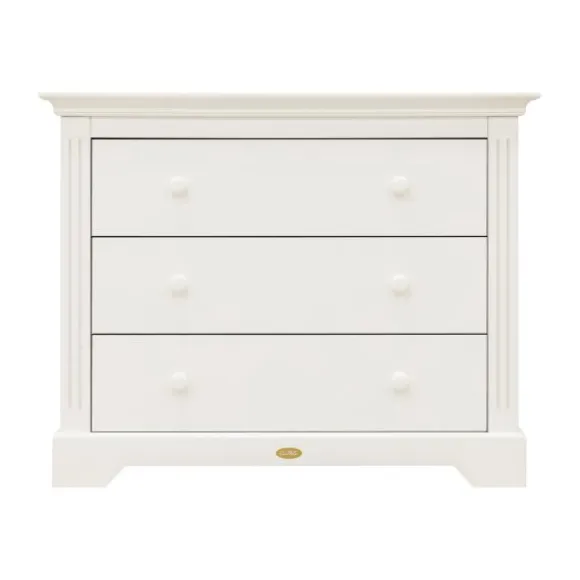 De commode is voorzien van drie ruime lades die soepel openen en sluiten. Het brede bovenblad is geschikt om een aankleedkussen op te plaatsen, zodat je de commode ook als verzorgingsplek kunt gebruiken. Gemaakt van hoogwaardig MDF en spaanplaat staat dit meubel garant voor een stevige en duurzame constructie.