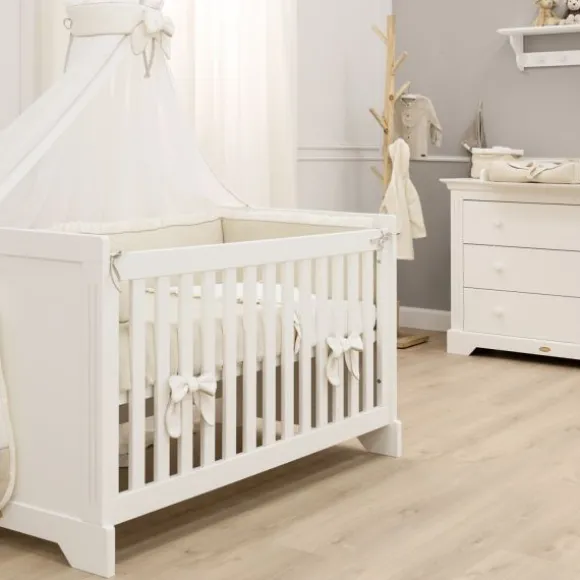 Het ledikant 60×120 cm is voorzien van een in hoogte verstelbare lattenbodem. Zo ligt je kindje de eerste maanden hoger en kun je hem of haar eenvoudig in en uit bed tillen. Zodra je kindje groter wordt, verlaag je de bodem voor extra veiligheid. De commode beschikt over drie ruime lades met voldoende plek voor kleding en verzorgingsspullen.