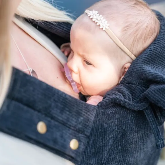 De ByKay Click Carrier Classic Pro Draagzak – Ribbed Velvet – Smokey Black is heel eenvoudig in gebruik. Met enkele klikken heb je de draagzak op een veilige en ergonomische manier bevestigd en kan je samen met je kindje op avontuur. De drager is voorzien van een slaapkapje waarmee je je kindje kunt afschermen tegen prikkels van buitenaf. Deze drager heeft een geïntegreerde nekondersteuning die door middel van koordjes strakker gezet kan worden. Hiermee maak je de bovenkant van de draagzak wat strakker, zodat het nekje van je kindje perfect wordt ondersteund. Je kan de drager gebruiken op de buik, op de heup en op de rug.