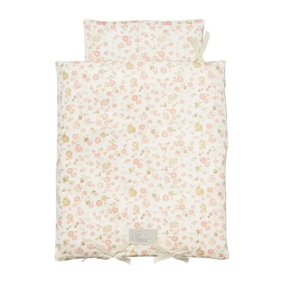 Het poppenbeddengoed is gemaakt van 100% biologisch katoen en voelt heerlijk comfortabel aan. Dankzij de mooie striksluitingen blijft het dekentje netjes zitten tijdens het spelen. De set is perfect passend voor de meeste poppenbedjes, maar kan natuurlijk ook gebruikt worden in wiegjes of als decoratie.