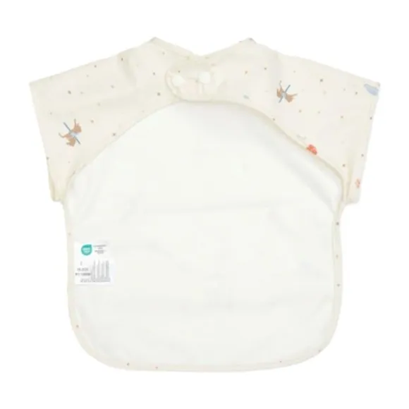 De slab is gemaakt van gerecycled polyester met een waterafstotende PU-coating en is eenvoudig schoon te vegen of te wassen in de wasmachine. Dankzij de handige drukknopen op de rug is de slab snel aan en uit te doen. De geïntegreerde opvangrand aan de onderzijde voorkomt dat eten op de grond terechtkomt en maakt opruimen een stuk eenvoudiger.