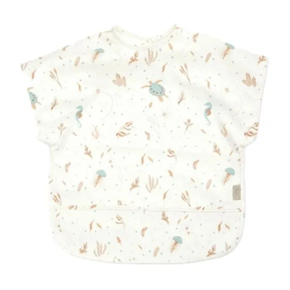 De Cam Cam Slab Korte Mouwen – Sea Garden is perfect voor avontuurlijke eters en creatieve momentjes. Deze praktische slab biedt optimale bescherming dankzij de korte mouwen en brede opvangrand. Het Sea Garden dessin met schattige zeedieren, kwalletjes en zeewier brengt de onderwaterwereld tot leven en maakt iedere maaltijd een vrolijk avontuur.