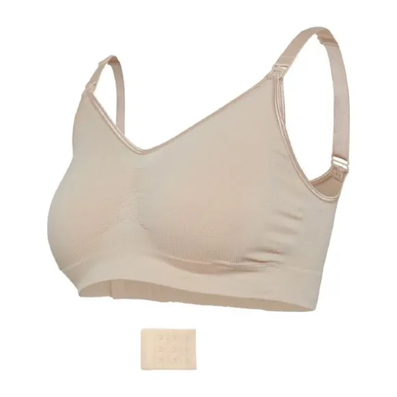 De Carriwell Original Voedingsbh – Mt. L – Honey is een comfortabele bh voor tijdens de zwangerschap en wanneer je borstvoeding geeft. De naadloze bh heeft een perfecte pasvorm doordat de bh zich aanpast naar de vorm van je lichaam. Ook wanneer je een strak t-shirt draagt, zorgt deze bh voor een glad oppervlak om bijvoorbeeld zoogkompressen te verbergen. De bh wordt geleverd met een losse bh-extender waarmee je de onderwijdte kunt verbreden. Zo is de bh tijdens en na de zwangerschap aan te passen naar jou lichaam. De cups kunnen gemakkelijk met 1 hand geopend worden om je kindje te kunnen voeden. Daarnaast gaan de cups volledig open voor een optimaal huid-op-huid contact tijdens het voeden. Verder is de voedingsbh gemaakt van hoogwaardig materiaal en voelt erg comfortabel aan.