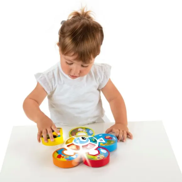 Met het Chicco Guess The Animal Puzzelspel zal je kindje zich urenlang vermaken en heerlijk kunnen spelen. Door op de startknop te drukken met het vrolijke gezichtje wordt het spel gestart. De lampjes zullen oplichten en een melodietje zal worden afgespeeld. Wanneer het lichtje bij stopt op een figuurtje moet je kindje het juiste puzzelstukje verbinden. Als je kindje het juiste stukje op de juiste plek legt zal het geluid van het bijpassende dier te horen zijn. Hierdoor leert je kindje vormen, dieren en geluiden herkennen. Door alle vrolijke geluiden en vormen zal je kindje worden uitgedaagd om ermee te spelen en bijdragen aan de ontwikkeling.