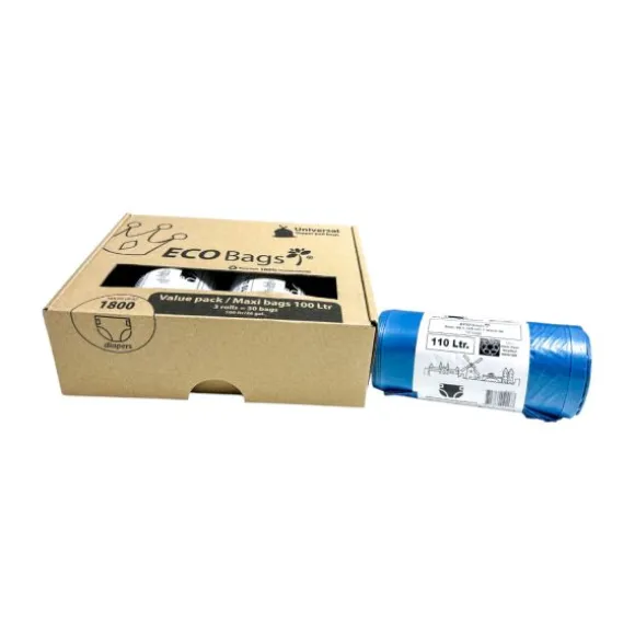 Deze ECO Bags zijn speciaal ontworpen voor de Large en Maxi modellen van de Diaper Champ luieremmer, maar passen ook perfect in andere luieremmers en standaard prullenbakken. Met een royale capaciteit van 100 liter per zak zijn ze ideaal voor grote hoeveelheden afval. Het multipack bevat 3 rollen met elk 10 zakken, goed voor een totaal van 30 zakken.