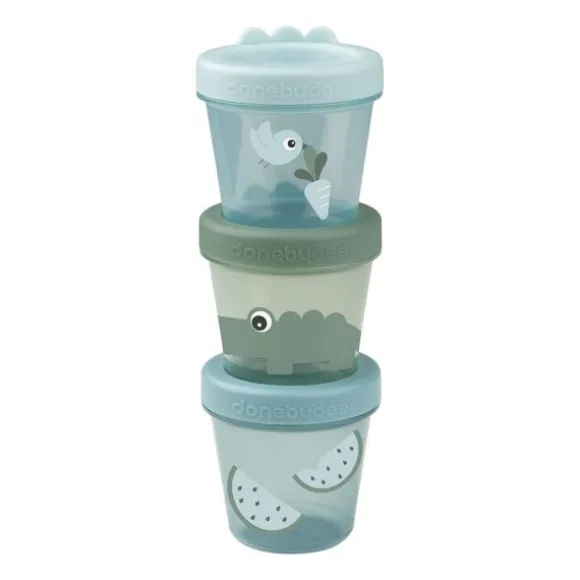 Deze Done By Deer Croco Bewaarbakjes – 3 Stuks – Green zijn ideaal om eten voor je kindje in te bewaren. Zo kan je het eten opwarmen of in de vriezer doen. De bakjes zijn hermetisch afsluitbaar en gemaakt van hoogwaardig materiaal. De set bestaat uit 3 bewaarpotjes met een inhoud van 150 ml. Verder zijn de bewaarbakjes voorzien van een schattige print van Croco en de Deer Friends met hun favoriete snacks.