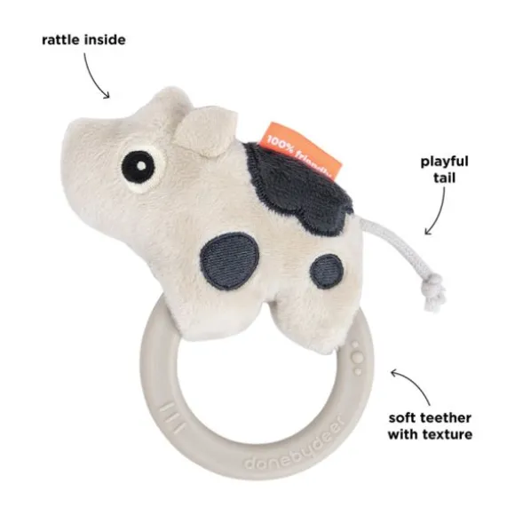 De **Done By Deer Dotti Rammelaar/Bijtring – Sand** is een schattig en multifunctioneel speeltje dat speciaal is ontworpen om de **zintuigen en motoriek** van je kleintje te stimuleren. Dit lieve koetje is niet alleen een zachte rammelaar, maar ook een bijtring die verlichting biedt bij doorkomende tandjes. Dankzij het zachte pluche en de siliconen ring is het speeltje **veilig en comfortabel** voor kleine handjes om vast te pakken.