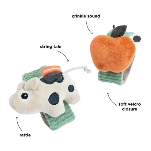Met De Done By Deer Polsrammelaars – Dotti Green Wordt Ontdekken Nog Leuker Voor Je Kleintje. De Set Bestaat Uit Twee Zachte Rammelaars In De Vorm Van Een Koe En Een Appel. Bevestig Ze Rond De Pols En Stimuleer Zo De Zintuigen, Beweging En Lichaamsbewustzijn. Ideaal Voor Baby’s Vanaf De Geboorte.