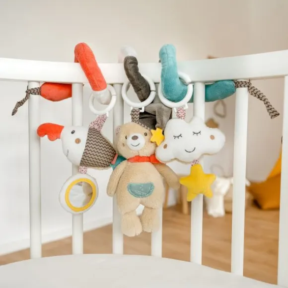 De Fehn Activity Spiraal – Bruno – Multikleur zorgt voor eindeloos speelplezier en stimuleert de ontwikkeling van je baby. De spiraal is voorzien van drie zachte speelfiguurtjes, waaronder een beertje, wolkje en visje met spiegeltje. Ze nodigen uit tot grijpen, ontdekken en stimuleren de oog-handcoördinatie. Dankzij de flexibele spiraalvorm wikkel je het speeltje eenvoudig om een box, wieg, kinderwagen of autostoel. De figuurtjes zijn verschuifbaar, zodat je ze op de perfecte plek kunt positioneren voor je kindje. Ideaal voor thuis én onderweg!