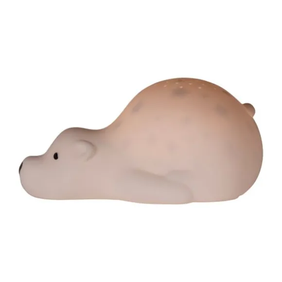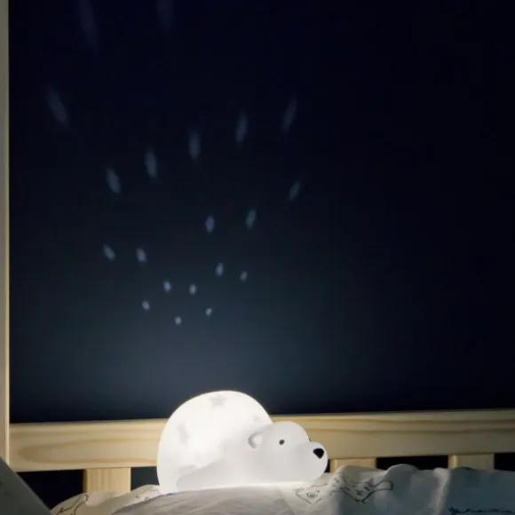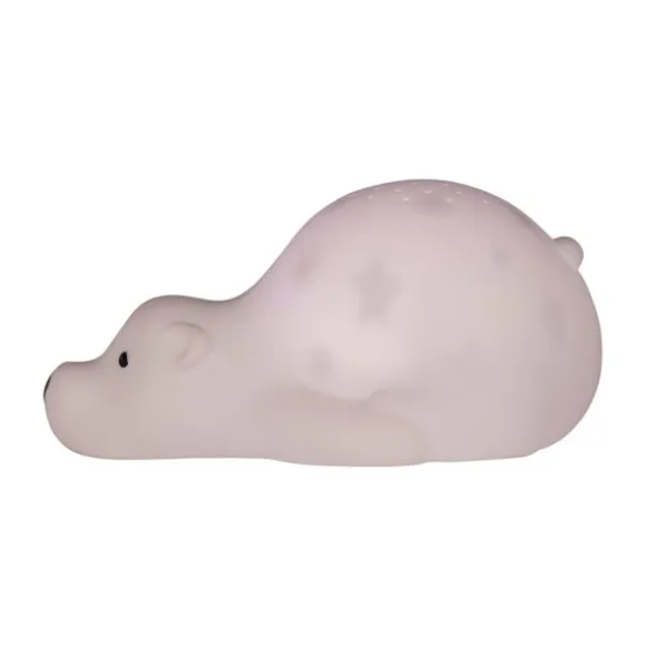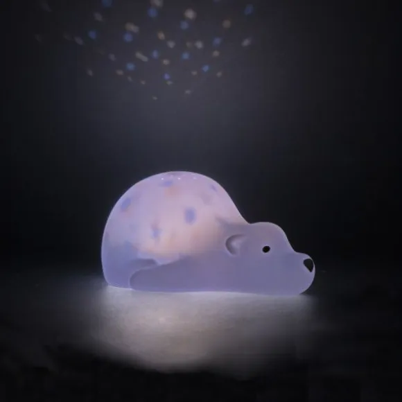 De Flow Amsterdam Bjorn Projector biedt alle opties om de baby- of kinderkamer in een rustgevende droomwereld te veranderen. De vrolijke projector vult het plafond met prachtig licht. Vooraf kan de projector worden ingesteld met een timer van 30 minuten zodat je kindje rustig in slaap kan komen. De baby projector dient ook als nachtlampje met sterretjes over het hele lichaam. Op de projector zitten zes verschillende licht opties: wit, blauw, geel, alle kleuren, vervagen tussen kleuren en alle kleuren aan / uit vervagen. Verder is de projector voorzien van een ingebouwde oplaadbare batterij en USB aansluiting. Alle opties zijn aan de onderkant te bedienen en geven jou en je kindje een perfecte nachtrust.