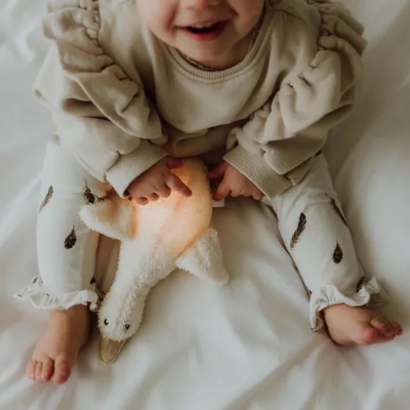 Is jouw kindje bang in het donker? Dan biedt deze schattige Flow Amsterdam Liva Plush Night Light – Beige dé perfecte oplossing! Dit knuffeltje is namelijk ook een nachtlampje, waardoor je kindje een leuk eendenvriendje heeft in het donker! Het lampje in de knuffel beschikt over twee verschillende kleurstanden, namelijk rood en wit. Met één druk op de aan-/uitknop, kun je gemakkelijk wisselen tussen de kleurtjes en ook de helderheid naar wens aanpassen. Het lampje is eenvoudig op te laden via USB-C en beschikt over een praktische (optionele) timerfunctie van 15 minuten. Daarnaast kun je het lampje gemakkelijk uit de knuffel halen, zodat je de knuffel kunt wassen, zonder het lampje te beschadigen. Verder is de knuffel gemaakt van heerlijk zacht materiaal, zodat je kindje er lekker mee kan knuffelen vóór en/of tijdens het slapen!