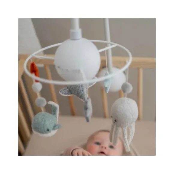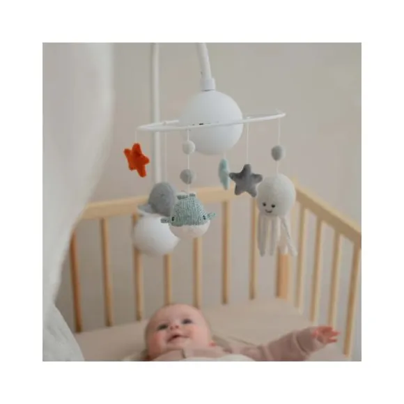 De Flow Amsterdam Ocean Muziekmobiel is een prachtige toevoeging aan de babykamer, ontworpen om je kleintje te kalmeren en te vermaken. Met schattige oceaandiertjes en vier rustgevende melodieën, waaronder Mozart en Meditatie, creëert deze muziekmobiel een serene sfeer voor je baby. Het visuele ontwerp stimuleert de zintuigen van je kindje, terwijl de melodieën helpen bij het ontspannen en in slaap vallen.