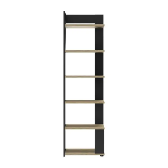De Gami Nael Boekenkast – Rookwood Eik is een moderne en functionele open kast met zes opbergniveaus. Dankzij het eigentijdse twee-tone design in zwart en rookwood eik past deze boekenkast perfect in een kinder-, tiener- of studeerkamer. De kast is ontworpen als aanvulling op andere meubels uit de Gami Nael collectie en is bijvoorbeeld even hoog als de bijpassende kledingkasten. Met zijn slanke vormgeving is de kast flexibel te plaatsen, zowel in de lengte als in de diepte, afhankelijk van de beschikbare ruimte in de kamer. De boekenkast biedt volop ruimte voor boeken, decoratie of opbergmandjes. Voor extra veiligheid wordt aanbevolen de kast aan de muur te bevestigen tijdens de installatie.