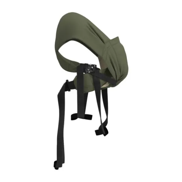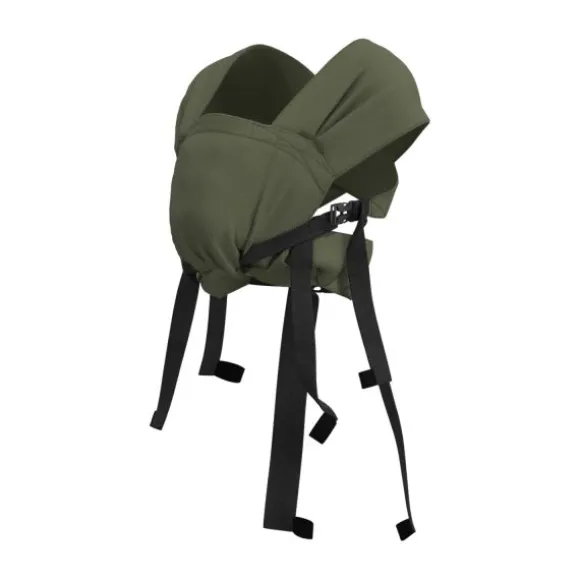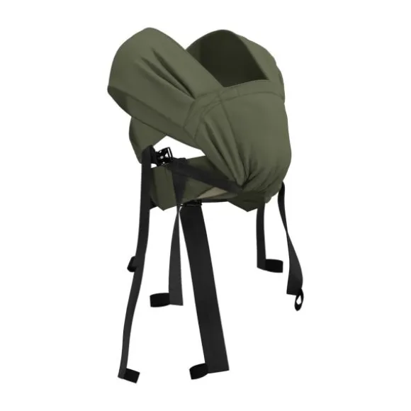 De draagzak is geschikt om te dragen op de buik met de X-vormige schouderbanden. Je kindje zit altijd in een kikkerhouding met gespreide beentjes en met de knietjes omhoog. Dit is een goede zithouding voor de ontwikkeling van de heupen, de bekken en het ruggengraat van je kindje.