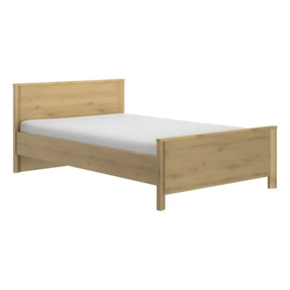 Dankzij het formaat van 120×200 cm biedt het bed extra ruimte voor comfort, terwijl het toch compact genoeg blijft voor kleinere kamers. De stevige constructie en duurzame materialen zorgen ervoor dat dit bed jarenlang meegaat. Het natuurlijke houtdecor geeft het bed een warme uitstraling en laat zich eenvoudig combineren met andere meubels in neutrale of natuurlijke tinten.