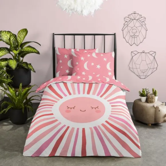 Het Good Morning Dekbedovertrek Sunny – 140 x 220 cm brengt een vrolijke en kleurrijke sfeer in de kinderkamer. Met zijn speelse zonnestralen en warme tinten creëert dit dekbedovertrek een gezellige uitstraling. Gemaakt van 100% katoen, is het ademend, vochtabsorberend en heerlijk zacht, perfect voor elk seizoen. Inclusief een bijpassende kussensloop van 60 x 70 cm en een doorlopende instopstrook voor extra gemak. Het dekbedovertrek is Oeko-Tex Standard 100 gecertificeerd, wat betekent dat het vrij is van schadelijke stoffen en veilig is voor de gevoelige kinderhuid. Bovendien is het wasbaar op 40°C en geschikt voor de droger, wat zorgt voor optimaal gebruiksgemak en langdurige kwaliteit.