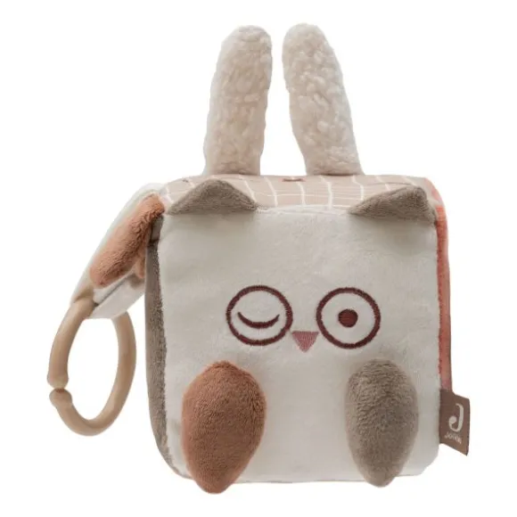 De Jollein Activiteitenkubus is een veelzijdig speeltje dat alle zintuigen van je baby prikkelt. Elke zijde van de kubus biedt iets nieuws om te ontdekken: knispermateriaal, labels, spiegeltjes, verschillende stofstructuren en vrolijke diertjes zorgen voor eindeloos speelplezier. Dankzij de handige lus met ring is de kubus eenvoudig te bevestigen aan de box, autostoel of kinderwagen. De zachte materialen en speelse elementen maken dit speelgoed niet alleen leuk, maar ook leerzaam. De kubus stimuleert de fijne motoriek, hand-oogcoördinatie en het grijpreflex van je kindje. Verkrijgbaar in verschillende schattige thema’s zoals een prinsessenkatje, konijntje of uiltje – perfect om cadeau te geven of zelf in huis te halen.