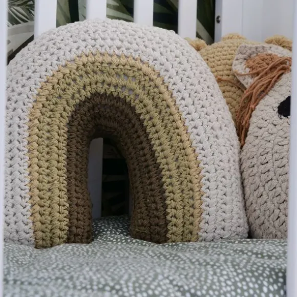 Het Kidsdepot Kussen – Ulrika is een uniek en speels accessoire voor de kinderkamer. Dit gehaakte kussen in U-vorm heeft een prachtige kleurencombinatie van wit en groentinten, wat zorgt voor een natuurlijke en rustgevende uitstraling. Dankzij de originele vorm is dit kussen echt anders dan anders! Met een hoogte van 45 cm is het perfect als decoratief item in een wiegje, stoel of speelhoek. Het zachte materiaal zorgt voor comfort én gezelligheid. Leuk om te combineren met andere gehaakte items van Kidsdepot.