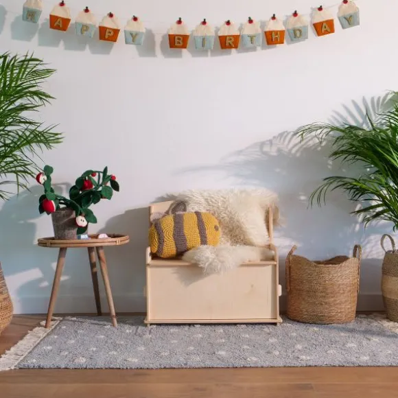 De Kidsdepot Slinger – Cake is een feestelijke en speelse decoratie voor iedere verjaardag. Deze vrolijke slinger is gemaakt van 13 zachte cakejes in verschillende kleuren, met de letters “HAPPY BIRTHDAY” erop geborduurd. Een perfecte toevoeging voor een verjaardagsfeestje in de kinderkamer of speelhoek!