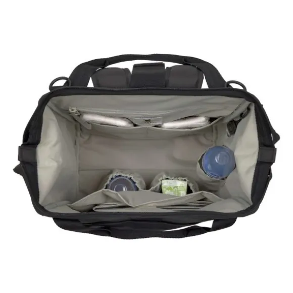 Met de Lässig Goldie Up Luiertas Black ben je van alle gemakken voorzien als je erop uitgaat met je kindje. De luiertas is lekker ruim en zit boordevol met slimme vakjes. Handig, want er moeten natuurlijk heel wat spulletjes mee als jij met je kleintje op pad gaat. De luiertas is voorzien van korte hengsels, verstelbare hengsels om de tas als rugtas te gebruiken, én een schouderband om de tas als crossbody te kunnen dragen. Daarnaast beschikt de tas over een geïsoleerde flessenhouder, waterafstotend verschoningsmatje en een houder voor voedselpotjes. Verder worden er clips meegeleverd om de tas aan de kinderwagen te kunnen hangen.