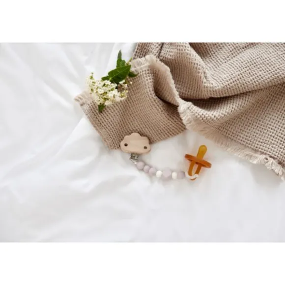Het BPA-vrije speenkoord is voorzien van een stijlvolle houten clip met metalen sluiting die eenvoudig aan de kleding van je kindje bevestigd kan worden. De zachte kleuren en het thema met wolkjes, maantjes en sterren prikkelen de fantasie en nieuwsgierigheid van je kindje. Ideaal voor dagelijks gebruik en perfect als origineel kraamcadeautje.