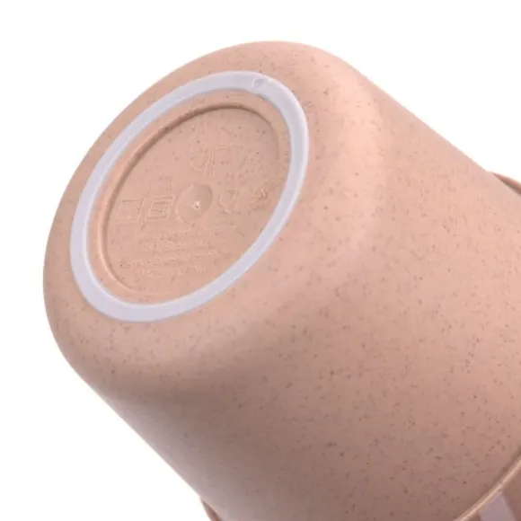 De beker is gemaakt van een duurzame mix van 70% polypropyleen en 30% cellulose. Dit maakt de beker niet alleen stevig en breukvast, maar draagt ook bij aan een lagere impact op het milieu. De antislipring aan de onderkant zorgt voor extra stabiliteit, zodat de beker stevig blijft staan op tafel en knoeien wordt voorkomen.