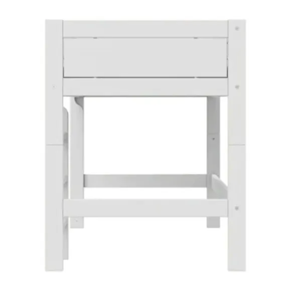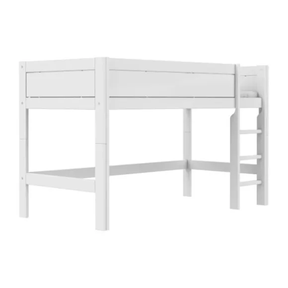 Het bed is vervaardigd uit duurzaam massief grenenhout en afgewerkt met een kindvriendelijke witte lak. De rechte ladder neemt minimale ruimte in beslag en kan zowel links als rechts geplaatst worden, afhankelijk van de indeling van de kamer. Voor extra speelplezier kun je het bed uitbreiden met accessoires zoals een speelgordijn, speelmatras of decoratieve hutpanelen — zo tover je het bed om tot een waar speelparadijs.