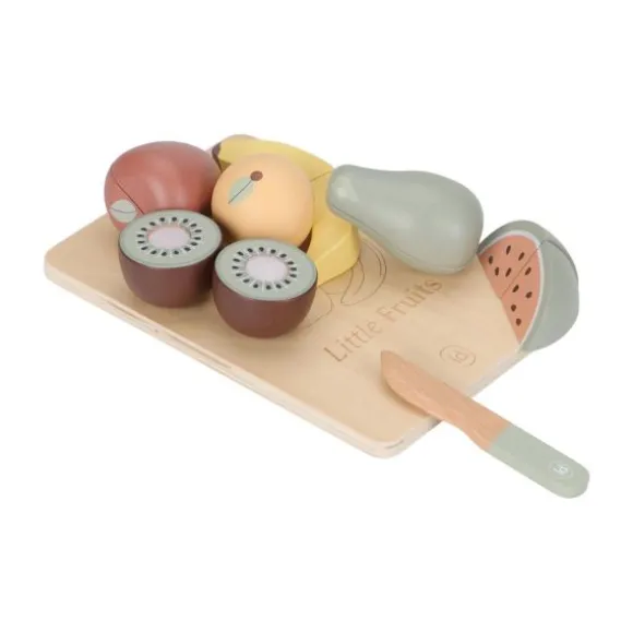 Met het Little Dutch Snijfruit leert je kindje spelenderwijs over fruit én keukenskills. Deze houten set bestaat uit een snijplank, mesje en 6 kleurrijke fruitsoorten zoals kiwi, banaan en watermeloen. Dankzij het klittenband kunnen de stukken fruit keer op keer doorgesneden en opnieuw aan elkaar gezet worden.
