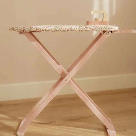De strijkplank heeft een stevig houten onderstel in zachte kleuren en is voorzien van een vrolijk gebloemde strijkhoes die perfect past bij de stijl van Little Dutch. Het bijgeleverde houten strijkijzer maakt het spel compleet. Dankzij het compacte en kindvriendelijke formaat is de set gemakkelijk te hanteren en geschikt voor zelfstandig spelen.