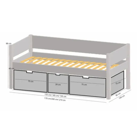 Manis-h Combinatiebed Met Lattenbodem En Hoge Lades – NANNA – 90×160 cm