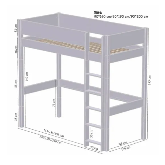 Manis-h Hoogslaper – FENRIS – 90 x 200 cm – Inclusief Slaapbank