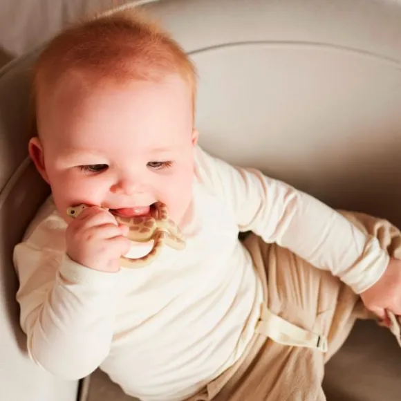 Deze Matchstick Monkey Giraf Bijtring is perfect wanneer de tandjes van je kindje beginnen door te komen! Het lichtgewicht speeltje is voorzien van een ergonomisch ontwerp zodat het makkelijk vast kan worden gehouden met kleine kinderhandjes. Doordat je kindje op het soepele speeltje kauwt en sabbelt wordt het tandvlees zachter en de pijn verlicht. Aan de achterkant van de dino zitten bobbels waar je een verdovende gel, olie of zalf op kan smeren zodat dit direct op de pijnlijke plekken aankomt. Verder is de Matchstick Monkey bijtring BPA-vrij, niet-giftig, milieuvriendelijk en gemaakt van FDA goedgekeurde siliconen van voedingskwaliteit.