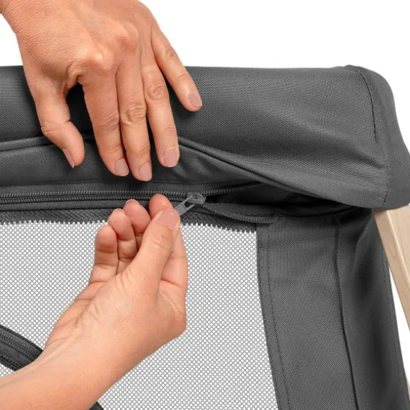Het Maxi-Cosi Calao Reisbedje Light Eco – Beyond Graphite biedt je kindje een comfortabele en veilige slaapomgeving, waar je ook bent. Dit reisbedje is ultracompact, lichtgewicht en eenvoudig in gebruik, waardoor het de ideale keuze is voor vakanties, familiebezoekjes en logeerpartijen. Met een stijlvol design en duurzame materialen uit de Beyond Collection combineert het bedje gebruiksgemak met een luxe uitstraling. Het reisbedje beschikt over twee verstelbare slaapniveaus. Voor pasgeborenen gebruik je het verhoogde niveau, zodat je minder hoeft te bukken, terwijl peuters comfortabel slapen op het lagere niveau. Het hoogwaardige CloudCore-matras biedt optimaal slaapcomfort voor je kleintje. De ademende mesh-zijkanten zorgen voor een goede luchtcirculatie, zodat je kindje altijd comfortabel op temperatuur blijft. Daarnaast is er een handig zijraam toegevoegd, waarmee peuters zelfstandig in en uit het bedje kunnen stappen. Met zijn compacte ontwerp en snelle inklapsysteem is de Calao Light perfect voor onderweg. Het bedje is gemakkelijk op te bergen en mee te nemen, terwijl de gerecyclede materialen zorgen voor duurzaamheid en eenvoud in onderhoud. De machinewasbare stoffen maken schoonmaken een fluitje van een cent. Het moderne ontwerp met natuurlijke houteffecten maakt het reisbedje een stijlvolle toevoeging aan elke ruimte, zowel thuis als op reis.