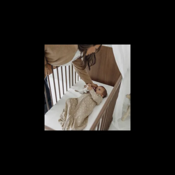 De lange rits aan de voorkant maakt aan- en uitdoen eenvoudig. Het subtiele hartjesmotief in zandkleur geeft de slaapzak een lieve uitstraling die bij elke babykamer past.