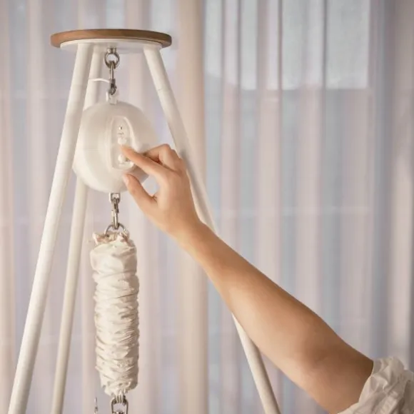 De Moonboon Motor Connect is gemaakt om je kindje zachtjes in slaap te wiegen. Met de wiegmotor ondersteun je het natuurlijke slaapritme van je baby. De wiegmotor integreer je gemakkelijk met je Moonboon Organic Hangmat. De wiegmotor heeft 3 verschillende slaapprogramma’s met verschillende lengtes. Zo biedt de motor programma’s voor een kort slaapje van 30 minuten, een lang slaapje van 2,5 uur en voor de nacht van 5,5 uur. Je bedient de wiegmotor met de app. In de app kies je een vooraf ingesteld programma of stel je de schommelintensiteit en gebruikstijd naar wens in. De app is beschikbaar in de Google Play Store en App Store. Verder krijg je bij de wiegmotor een voedingskabel van 3 meter en 2 karabijnhaken.