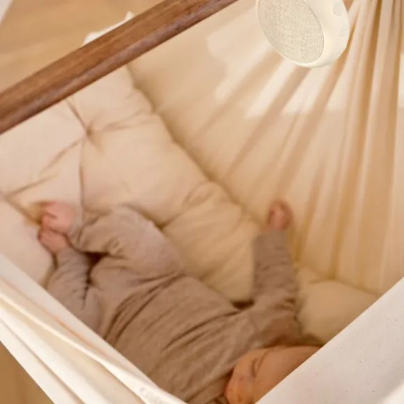 Met de siliconen ophanglus bevestig je het apparaatje eenvoudig aan een wieg, kinderwagen of autostoel. De bediening is gebruiksvriendelijk en de oplaadbare batterij maakt draadloos gebruik mogelijk. Perfect voor een rustgevende slaapomgeving, waar je ook bent.