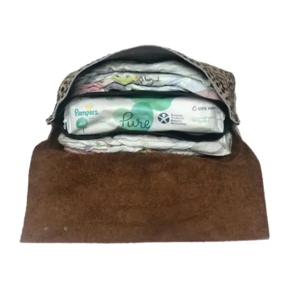 De Mozzbags Luieretui – Vintage – Croco Print is een stijlvolle en praktische oplossing voor onderweg. Dankzij de drie vakken neem je eenvoudig luiers, billendoekjes en kleine benodigdheden mee. Het middenvak is water- en vuilafstotend, ideaal voor vochtige doekjes. De etui sluit met een overslag en stevig elastiek, zodat alles netjes op z’n plek blijft. Gemaakt van 100% rundleer en voorzien van een trendy croco print en panterdetails is deze etui niet alleen functioneel, maar ook een echte blikvanger. Compact en handzaam, perfect voor in je luiertas of handtas.