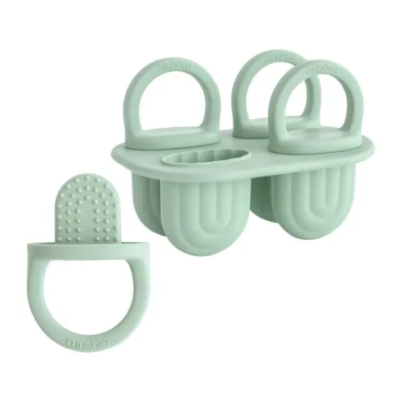 Maak snacktijd extra leuk met de Mushie Toddler Ice Pop Tray in Cambridge Blue. Deze siliconen tray heeft vier compartimenten waarmee je schattige regenboogvormige ijsjes kunt maken. De flexibele food-grade siliconen maken het eenvoudig om de ijsjes te verwijderen, terwijl de kleine handgrepen perfect zijn voor kleine handjes. Ideaal om gezonde en smakelijke traktaties te maken en je kleintje nieuwe smaken te laten ontdekken.