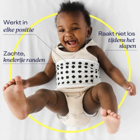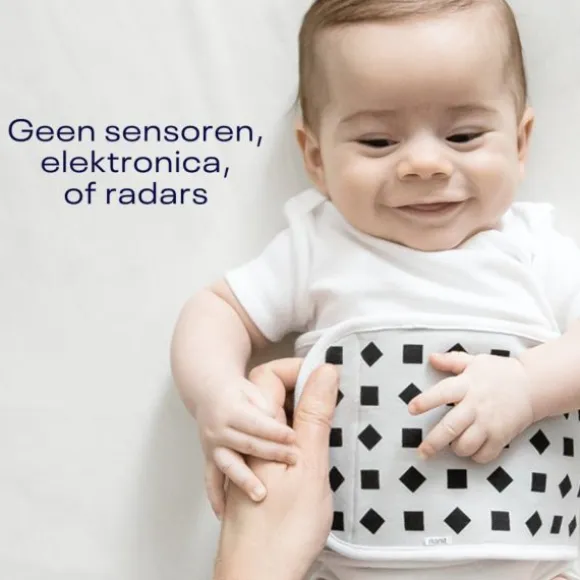 De Nanit Breathing Band™ is een innovatieve ademhalingsmonitor die samenwerkt met de Nanit Pro Camera om de ademhalingsbewegingen van je baby te volgen. Dankzij het unieke patroon op de band en de gepatenteerde beeldherkenningstechnologie van Nanit, kun je in real-time meldingen ontvangen als er veranderingen optreden in de ademhaling van je kindje. Dit alles gebeurt zonder sensoren, elektronica of radars, waardoor je kleintje ongestoord en veilig kan slapen.