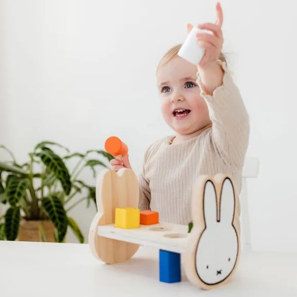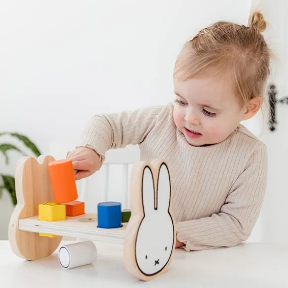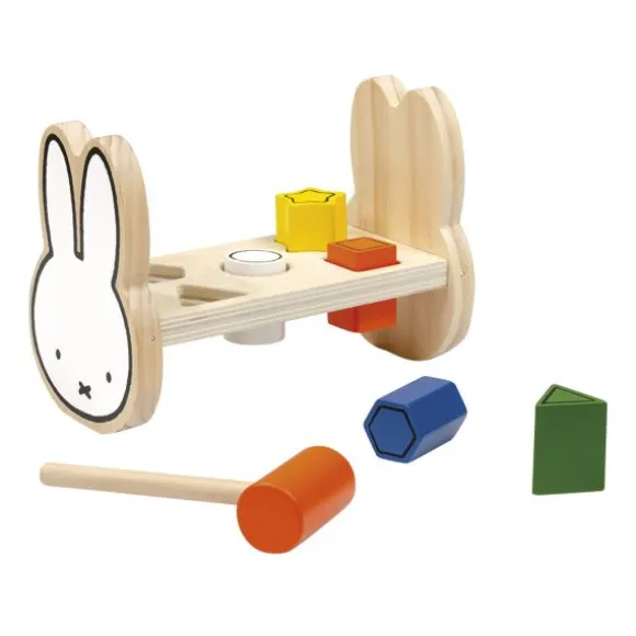 Met de Nijntje Hamerbankje ontwikkelt je kindje de hand- oog coördinatie op een speelse manier. In het bankje passen vijf gekleurde staafjes die je kindje er met het hamertje in kan slaan. Als je kindje alle staafjes er in heeft geslagen, draai je het bankje eenvoudig weer om zodat je kindje opnieuw kan beginnen. Dankzij de vrolijke kleurtjes wordt je kindje uitgedaagd met de hamerbank te spelen. De hamerbank is gemaakt van hoogwaardig materiaal en bestaat uit een hamerbank, vijf staafjes en een hamertje.